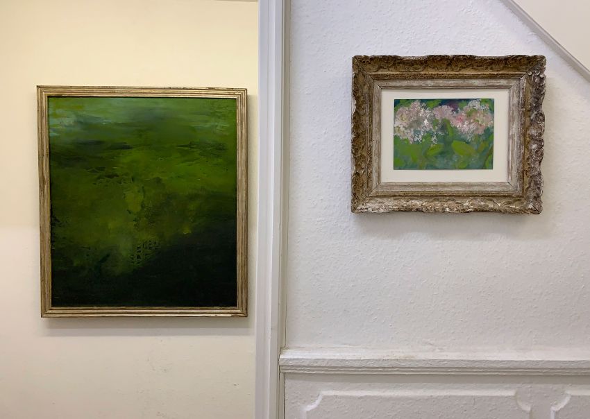 Lediglich bei einer kleineren Werkgruppe früherer Arbeiten bleibt die Künstlerin einer realistischeren Bildauffassung verhaftet. Im Unterschied zu den einheitlichen Titeln bei den neueren Landschaftsbildern geben in früheren Arbeiten Bildtitel Anhaltspunkte: Botanischer Garten, Möwen, Sockel, Berg, Blumentopf oder Steinbruch.
